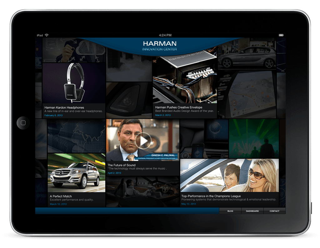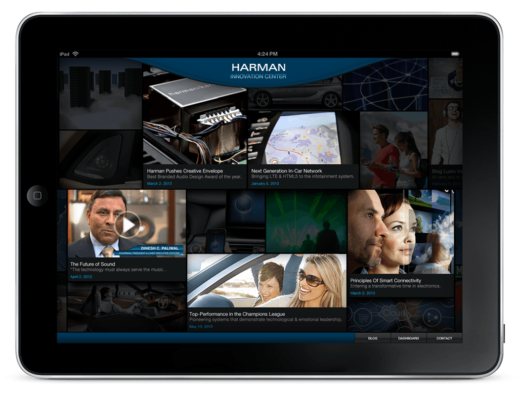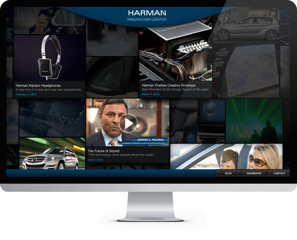 The interface turned Harman’s innovations into an immersive, intuitive experience. Flowing content tiles created visual interest with automatic highlighting, while overlays added depth without disrupting navigation.