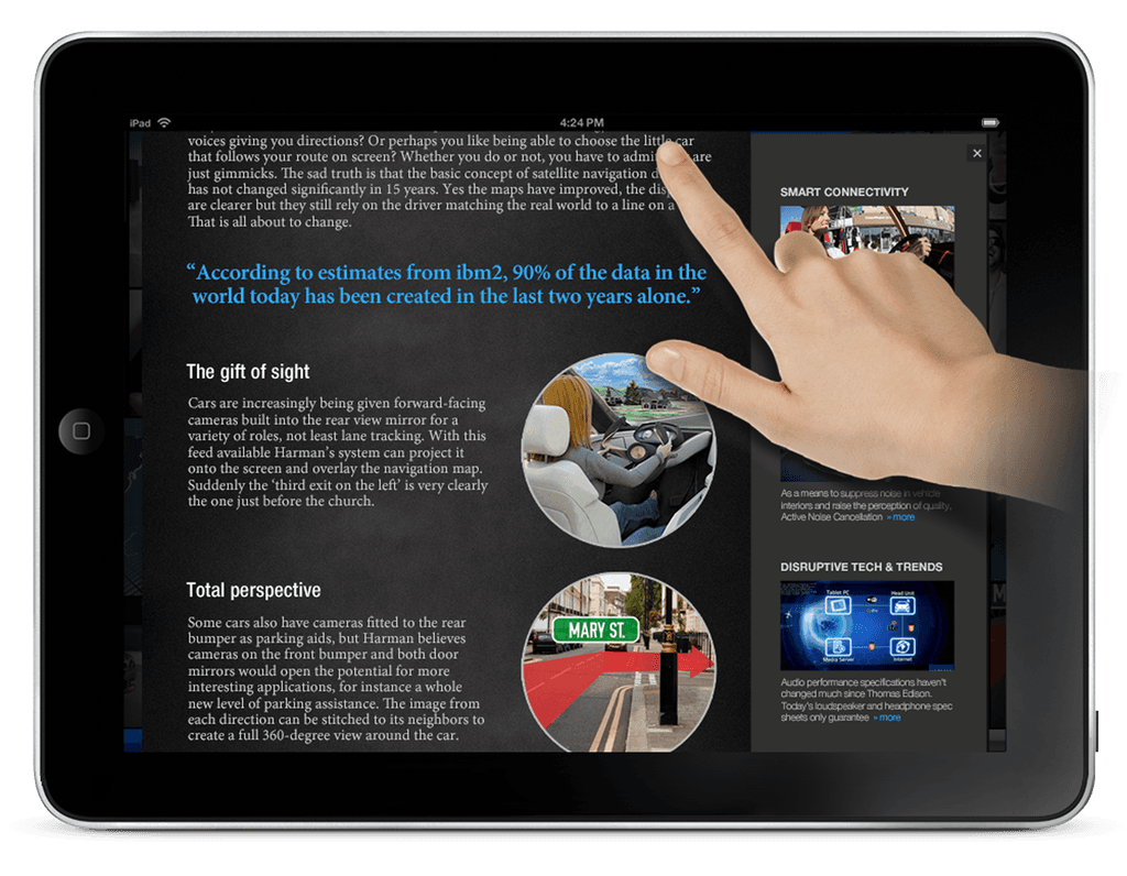 The design included dynamic content highlighting, rich media integration, and contextual overlays that responded naturally to touch gestures.